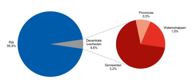 Van elke euro die huishoudens en bedrijven in Nederland aan belastingen en sociale premies betalen gaat in 2025 3,2% naar de gemeenten. De decentrale overheden nemen samen 4,6% voor hun rekening, de Rijksoverheid 95,4%. Het aandeel van de gemeente Almelo aan ontvangen belastingen en retributies bedraagt in dit geheel ongeveer 56 miljoen euro.
